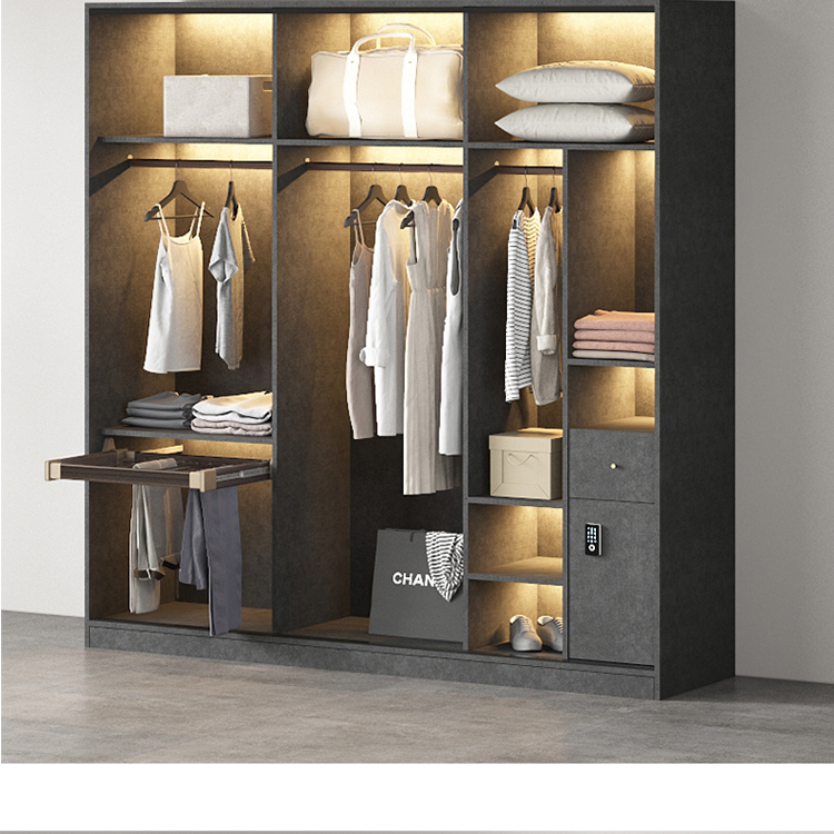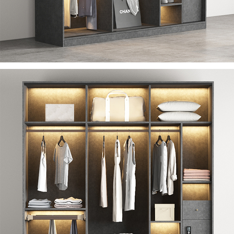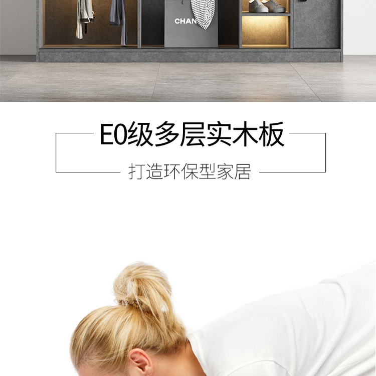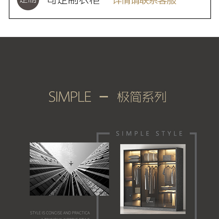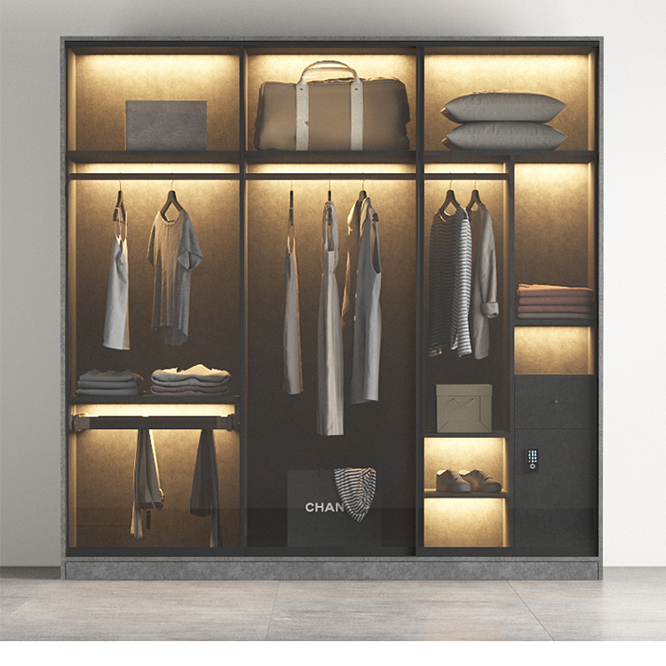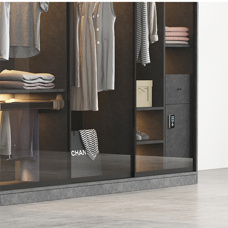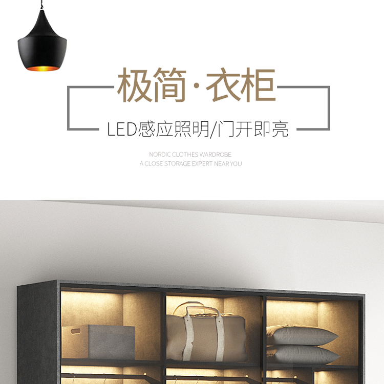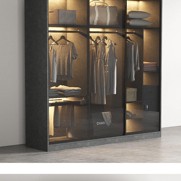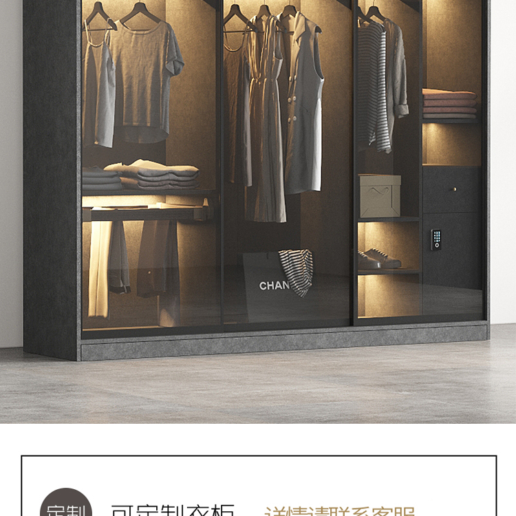 轻奢定制极简玻璃门衣柜实木多层板卧室整体衣橱定制